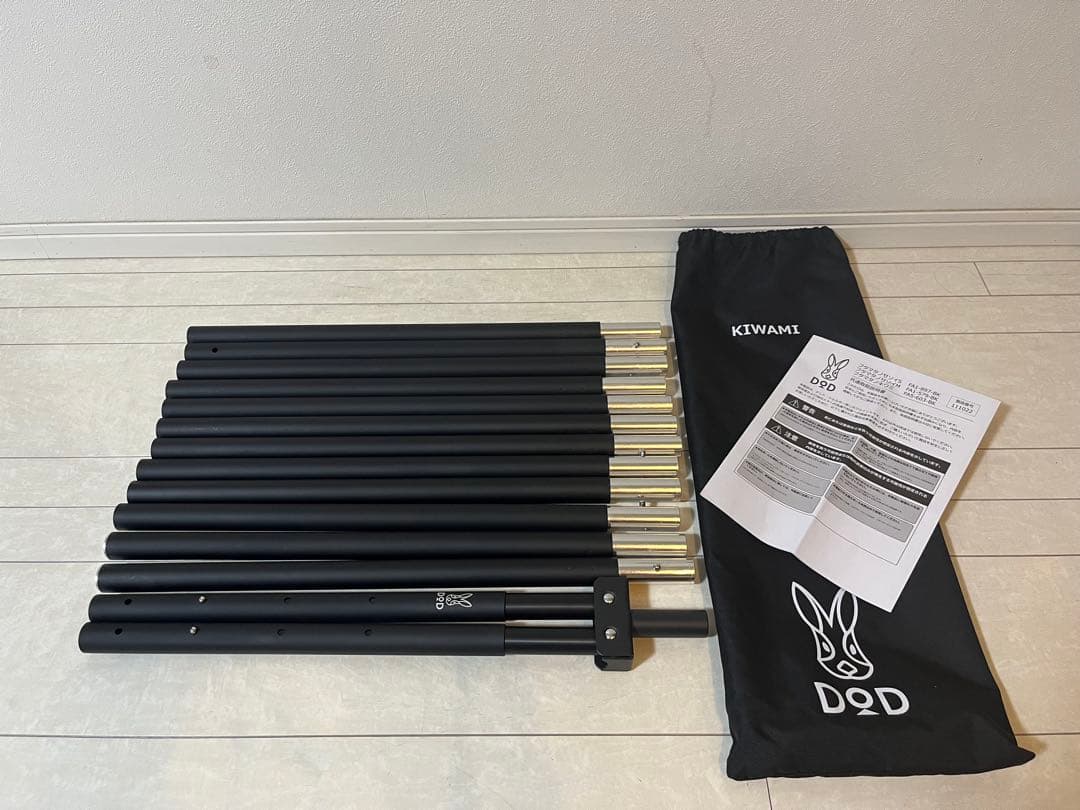 - 荷物が届き早速室内で設営してみました。 なかなかの品物です。 ただ、セットの片付けるとき圧縮袋に入れた瞬間に、ベルトが切れました。 (おそらく縫製が甘かったのかと・・。)