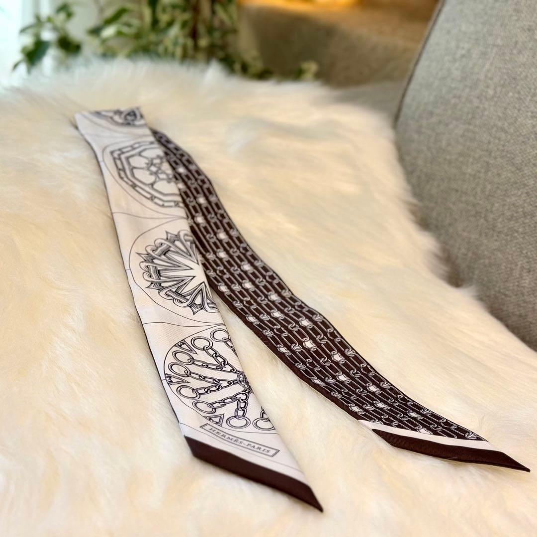 都内のエルメス銀座店にて購入した正規品のツイリーです。鮮やかなイエローをベースに、ブルー・ネイビー・ブラウンを組み合わせたエルメスらしい馬具モチーフのマルチカラーデザインです。バッグのハンドルに巻いた際も映え、コーディネートのアクセントになる一本です。使用回数は2回のみで、その後、都内の高級クリーニング店「レジュイーユ」にてクリーニング・メンテナンス済みです。目立った汚れやダメージは見受けられず、全体的に綺麗な状態かと思います。お写真7枚目は、クリーニング店より仕上がってきた状態となり、こちらの状態のまま丁寧に梱包し発送いたします。あくまでも中古品・自宅保管品となりますため、細かな点を気にされる方はご購入をお控えください。中古品にご理解いただける方のみお願いいたします。ご不明点がございましたら、お気軽にコメントください。
